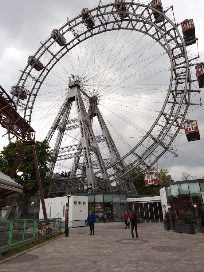 I felt I had to see the famous Ferris wheel in Prater Park that features in the film The Third Man. Of course this fairground ride is also the backdrop to the same dramatic scene in Greene’s novella, a copy of which was in my luggage, though there was little time for reading. The wheel is an extraordinary relic, being composed of railway carriages, though few people were riding it on the chilly day that we visited.