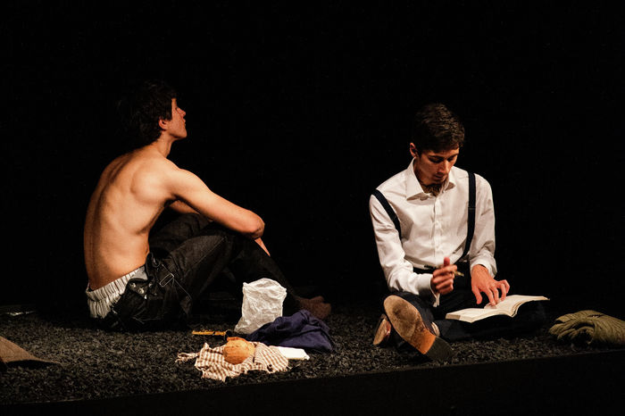 The perfect play for this studio theatre. A one-act two-hander, quiet, intimate, conversational, though set in Britain in 1944 with the drone of bombers overhead. Two young men get to know each other: Oliver, a quaker and conscientious objector, and Eric, an injured artist whose openness about his homosexuality wins the other’s admiration. Their friendship remains one of frank exchange, however, and never becomes physical.