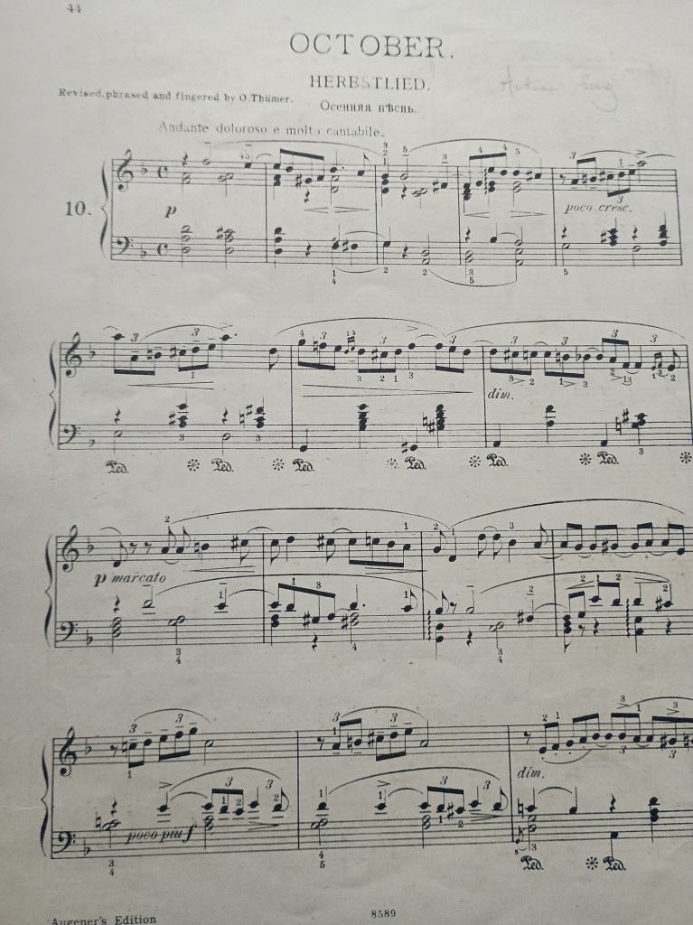 Tchaikovsky’s The Seasons is a suite of piano pieces depicting the months of the year, and October, one of the finest, is typical of the composer in melancholy mood.